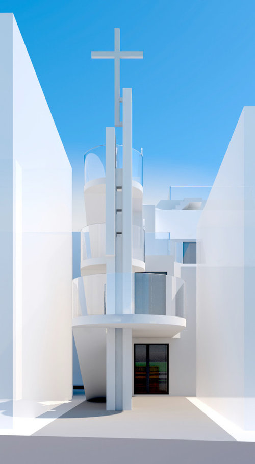 家々に囲まれ奥まった敷地の中に、可能な限り大きな礼拝堂と