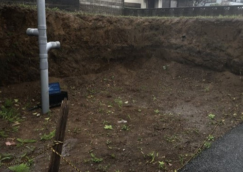 添付の写真は、その敷地の様子を撮影したものです。(雨で少し地面が濡れています。)