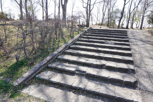 大谷石を使った階段で、一部は欠けていたり全体的に風化が進んでいたりしますが、それがかえって味わいとなり、独特の趣を醸し出しています。