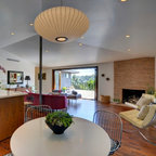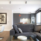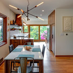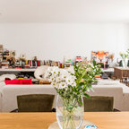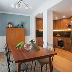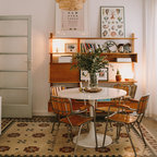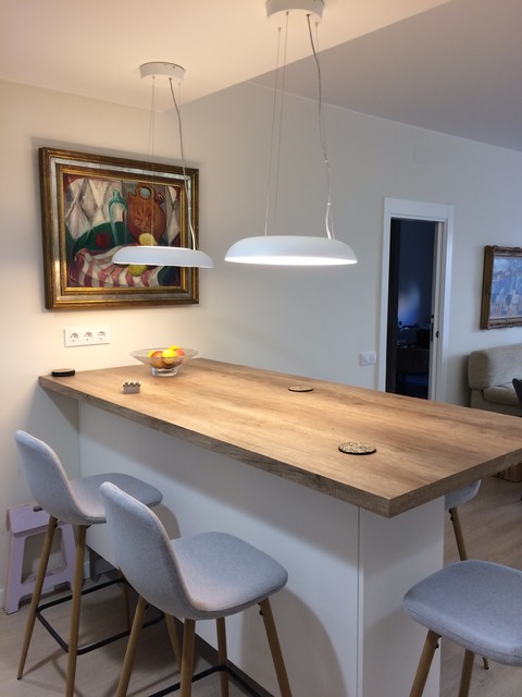 バルセロナの中サイズのミッドセンチュリースタイルのおしゃれなダイニングキッチン (ベージュの壁、淡色無垢フローリング、茶色い床) の写真 — Houzz