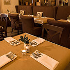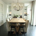サンフランシスコの中サイズのラスティックスタイルのおしゃれな独立型ダイニング (ベージュの壁、トラバーチンの床、ベージュの床) の写真 — Houzz