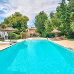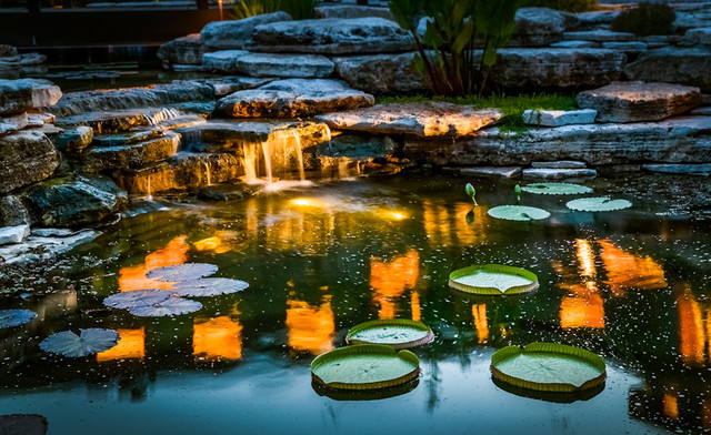ヒューストンのカントリー風おしゃれな噴水のある庭の写真 — Houzz