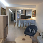 バルセロナの中サイズのミッドセンチュリースタイルのおしゃれなLDK (白い壁、カーペット敷き、暖炉なし) の写真 — Houzz