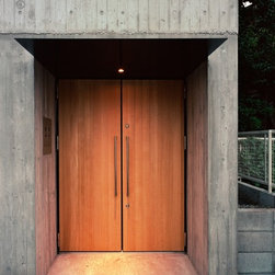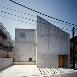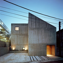 敷地は都内の閑静な住宅地、平坦な敷地に夫婦と母の為の建てたRC造3階建ての2世帯住宅です。外装は杉貫板の型枠を縦に使ったコンクリート打放し仕上げとして彫刻的な力強い印象を作っています。