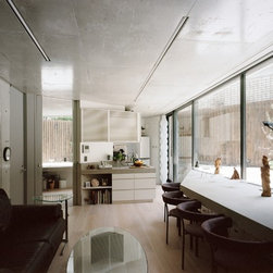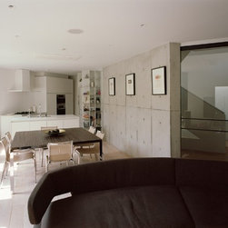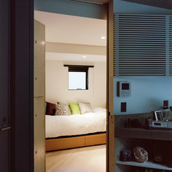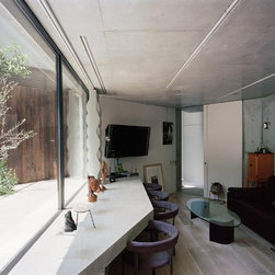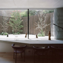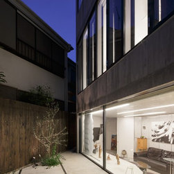 住宅街に建つ夫婦とその母親のための2世帯住宅である。今回の計画では当初よりふたつの世帯のための住宅という意識は強くもたなかった。だから2世帯の関係を物理的空間(くっつける、離す、くっつけながら離す……)に移し替える操作を検討することはあまりなかった。というのも計画の当初で水墨画を描くことを趣味にしている母の大きな絵を飾る場をエントランスギャラリーとすることで、母の絵を介するコミュニケーションが自然と生まれることが想定されたからである。エントランスギャラリーは両世帯を空間的に共有させることに加え、自然光の印象深い変化を共通して経験する場となる。