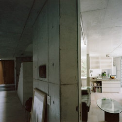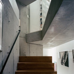 水墨画の作家である母の作品を飾るエントランスホールを2世帯の共通エリアとして1階に親世帯、2,3階に子世帯を配置しています。親世帯は母の描く水墨画に合わせ、コンクリートの表情を生かした仕上げにしています。子世帯は中央に配置された階段ホールを中心に回遊性のあるプランで構成されています。