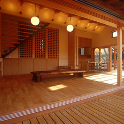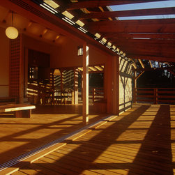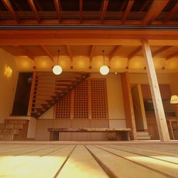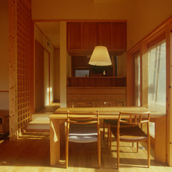 こうした歴史と自然に囲まれたこの里山に、昔存在したお茶屋が形を変え、現在ケーキ香房として存在しています。そしてその前にはハーブ畑が広がり、「御嵩の家」はそのケーキ香房を営んでいるオーナーの自邸としてハーブ畑に隣接して建てられました。 最初にこの場所に訪れて強く感じた事は、里山の自然の美しさと夕日の美しさでした。そしてこの場所の持つ力を最大限に感じて、楽しく豊かに暮らせる家をイメージしました。