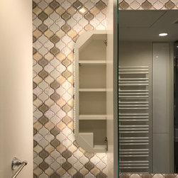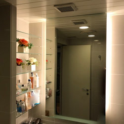 洗面所も収納不足を解消するためミラー裏収納とリネン庫を増設。