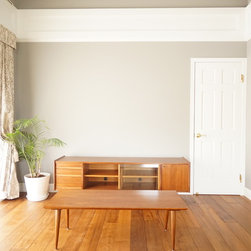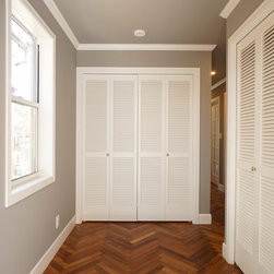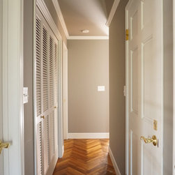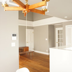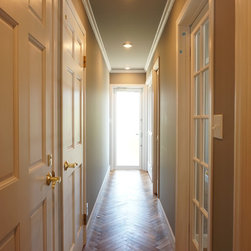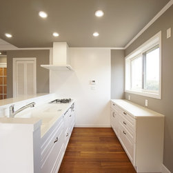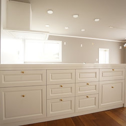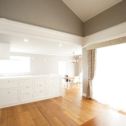 特にキッチンの前の白い収納については、いろんな案の中から時間をかけて決めたものです。床のヘリンボーンとよくマッチして存在感のあるキッチンになりました。
