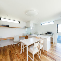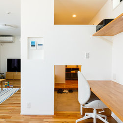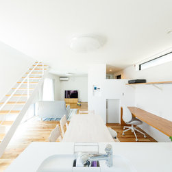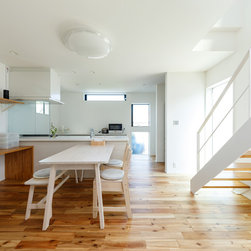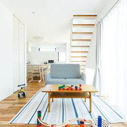 Eさんご家族の住まいのテーマは「明るい家」。そこに住む人が明るく暮らせる家、光が広がる明るい家、そして空気がきれいな家、3つのキーワードをカタチにしました。リビング階段の上が広々とした陽だまりのサンルームになっていて、そこから家じゅうに光が広がります。扉や仕切りを少なくした伸び伸びと抜け感のある一体感のある大空間設計は、どこで過ごしていても、光だけでなく家族の気配が伝わってきます。さらに高気密・高断熱に24時間換気を組み合わせて、一年を通じて心地いい安定した室内環境を実現しました。奥さまは広々と使いやすいキッチン、ご主人は子どもと並んで勉強できるカウンタースペース、初めはオーソドックスな家でいいと考えていたのに、家づくりが始まると自分たちだけの家づくりにワクワクがとまらなかったと言います。すっきりとしたシンプルモダンに仕上げた住まいには笑顔と明るい声が広がり、ご家族みなさんが思い描いた暮らしを楽しんでらっしゃいます。