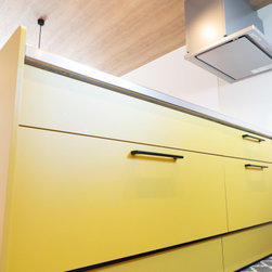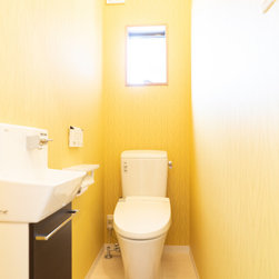 リラックスできる空間の中に、イエローキッチン・水廻りの色・壁紙など、鮮やかな色が潜んでいます。