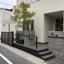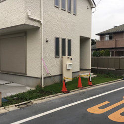 スライド門扉の引き込みを花壇の前に作り敷地を有効活用出来ている。