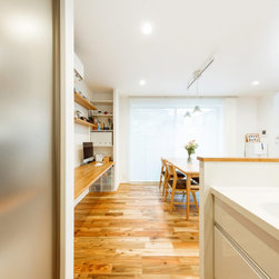 「コンセプトはモダンなそば屋さん」スクウェアで板張りのデザインをあしらった外観が希望だったと話すYさんご夫婦。「リガードさんにこの要望を伝えた時に、一緒におもしろがってくれたことが、今でも印象に残っています」とYさんは懐かしい思い出のように話してくれました。ネイビーの外壁に、アクセントで壁や軒天に板張りを加えたプランは、Yさんのイメージ以上の仕上がりに。この他、LDKの雰囲気やお気に入りのPCカウンターは、インターネットでYさんが見つけた画像でイメージを丁寧に共有しながら形にしていきました。