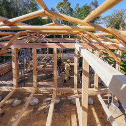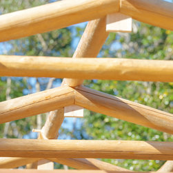 軽やかに「いかだ丸太のシザーストラス」の」屋根が架かります