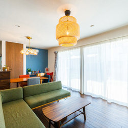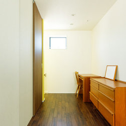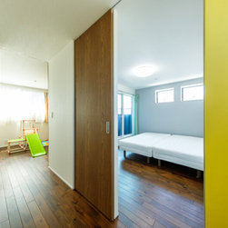 完成した住まいは、外から見ると開口部が少なく、マテリアルにこだわったモードな外観。それでいて、住まいの内側は心地よい広がりを感じる、仕切りのない開放的な空間設計が施されています。道路側に階段を配置して開口部を少なくするなど、外からのプライバシーに配慮しています。一方でリビングの大きな掃き出し窓はダイレクトにウッドデッキへと続き、内と外がゆるやかにつながっています。一体感のあるLDKは大人数が集まっても、広々と使うことができる開放感あふれるスペース。インテリアには木の素材を生かして、北欧調を意識してナチュラルテイストにまとめました。「部屋は寝る場所」と割り切り、プライベートスペースは最低限の広さに。子どもたちの気が向いた時に好きな場所で読書や宿題に集中して取り組めるように、リビング脇や階段室にもスタディコーナーをつくりました。