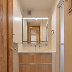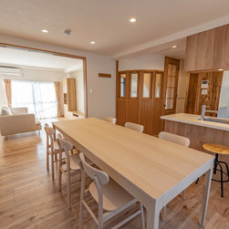 ご主人様のご実家(3・4階)をリノベーション。3階をパブリックゾーン、4階はプライベートゾーンに分ける。築年数が古く、暗い印象だったので明るくする為床材はベージュ系のフローリングとした。