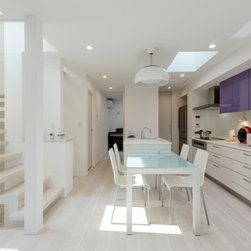 お隣のおうちと距離が近く、光が道路側の一方向からしか入らないので、天窓から光を取り入れています。