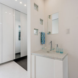 白がお好きということで、あたたかさのある白を基調にコーディネートしています。いつでも清潔さを保つため、各階に造作の手洗いを設置しました。