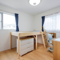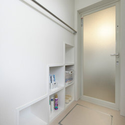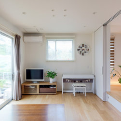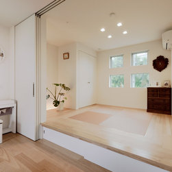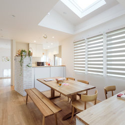 ブリックタイルの壁が印象的なキッチン、トップライトから光が差し込むダイニング、床の間のある小上がり、造作棚を作った脱衣室など、随所に一工夫あるおうちです。