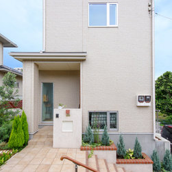 お施主様によって素敵に手入れされたお庭のあるおうちは、道路から2mほど高い位置にあって、階段をのぼった先に玄関が見えてきます。