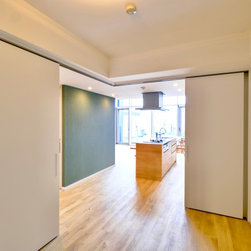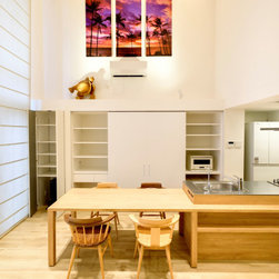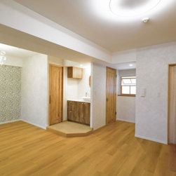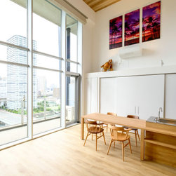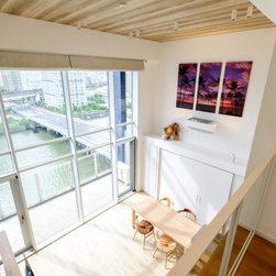 メゾネット下階を車椅子対応とし、完全バリアフリーのワンルーム空間とした