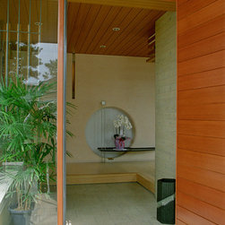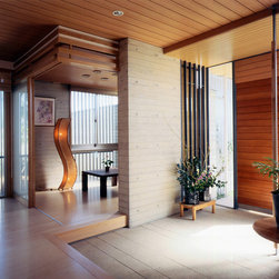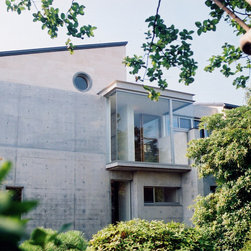 北陸に建つ3世代の住宅です。豊かな自然に囲まれた立地ですが、その自然が強烈であるがゆえに、生活を営む上ではむしろ厳しい環境にあります。そこで住宅 の基本であるシェルターとして、性能上は閉じる方向を目指しました。その一方、それまでの大らかな暮らし方が新しい家においても営まれることを念頭においての計画となりました。