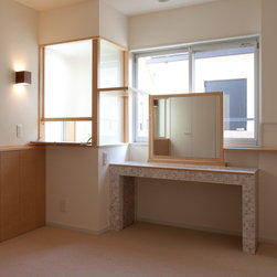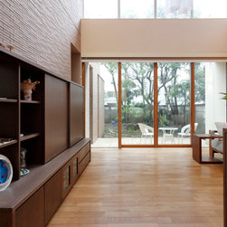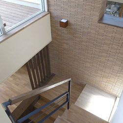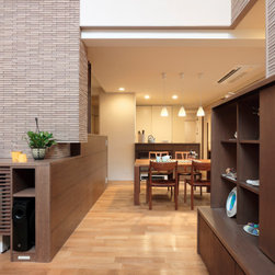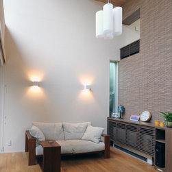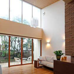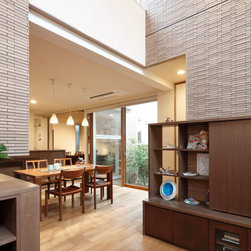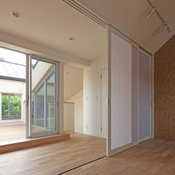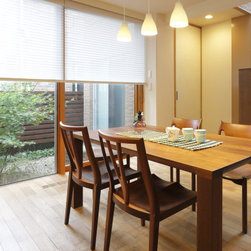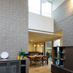 RCであることのメリットやオーナーの要望を収斂していった結果、屋根や天井が「つばさ」を広げたような形状となり、大らかな家族を表現するのに相応しいものとなりました。「つばさ」を仰ぐと、周囲から覗かれる心配なく空間が垣間見え、住宅が密集しているとは思えない「のびやかな」空間に仕立て上げることができたと思っています。