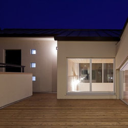 また、冬は陽光を家の奥まで届け、夏は強い日差しを家の外で遮るために、大きな開口と深い庇、そして、家の中心にコート状のルーフテラスを設けました。家の中心にルーフテラスがあると、そこから下に光を落としていくことが可能になるのです。
