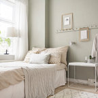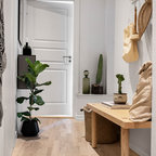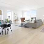 広いコンテンポラリースタイルのリビング・居間の画像 (フォーマル、ベージュの壁、淡色無垢フローリング、暖炉なし) — Houzz