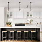 Storage was the main priority for our client. We added push to open cabinets to the back of the island and an overhanging bar allowed for seating.