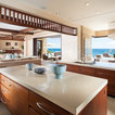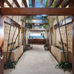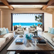 Wow, I love this dinning area with the lovely open glass window doors to the beautiful outside. What a great place to eat.