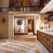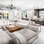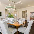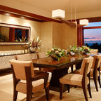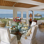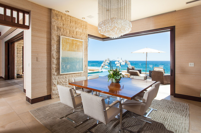 オレンジカウンティのトロピカルスタイルのおしゃれなダイニング (ベージュの壁、ベージュの床) の写真 — Houzz