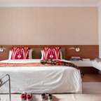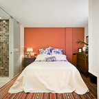 バルセロナの中くらいのエクレクティックスタイルのおしゃれな主寝室 (グレーの壁、赤い床、テラコッタタイルの床、暖炉なし) のレイアウト — Houzz