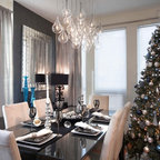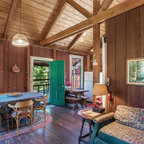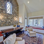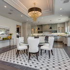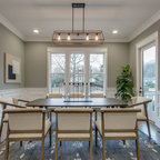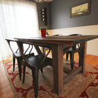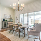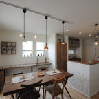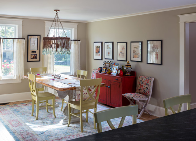プロビデンスのカントリー風おしゃれなダイニングキッチン (グレーの壁、無垢フローリング) の写真 — Houzz