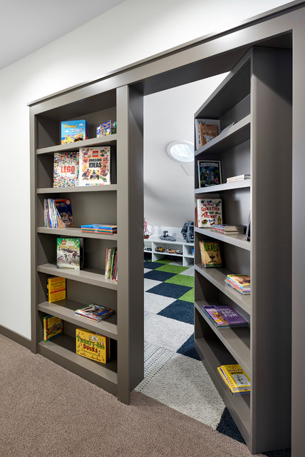ミネアポリスの大きいビーチスタイルのおしゃれな子供部屋 (白い壁、カーペット敷き、児童向け、マルチカラーの床) の写真 — Houzz