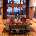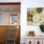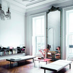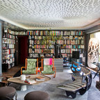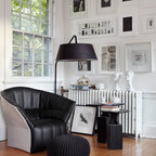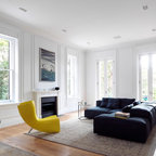 トロントのエクレクティックスタイルのおしゃれなリビング (フォーマル、白い壁、無垢フローリング、標準型暖炉、テレビなし) の写真 — Houzz