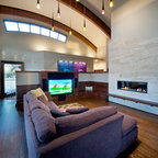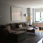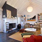 サンフランシスコのコンテンポラリースタイルのおしゃれなLDK (フォーマル、グレーの壁、無垢フローリング) の写真 — Houzz