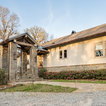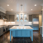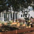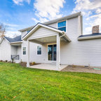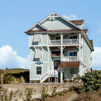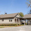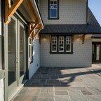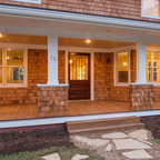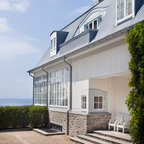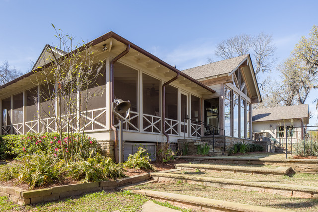 ニューオリンズのカントリー風おしゃれな家の外観 (石材サイディング、ベージュの外壁、切妻屋根、戸建、板屋根) の写真 — Houzz
