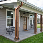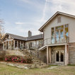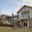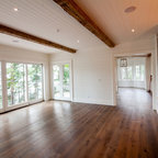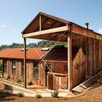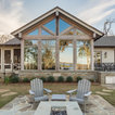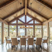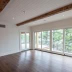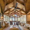 Marvin Windows & Doors with Antique Beams and Stacked Stone. Architecture by Scott Payne with Somdal Architecture.