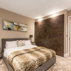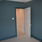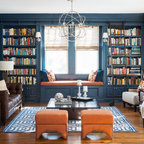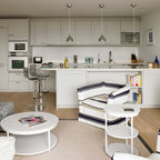 A smooth orange velvet sofa in the living room offers more than a passing nod to the 1970s but the modern shape brings it firmly up to date. 1970s revival is a key trend to look out for as you tour the house; ‘velvet sofas’, ‘brass’ and ‘houseplants’ were search terms that spiked in popularity on Houzz in 2017, and all have their roots in this bold decade.Wall paint, Cobalt Night, Dulux. Ultimate two gang socket, in gloss black, Schneider Electric.