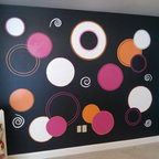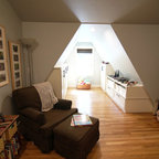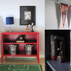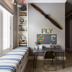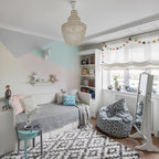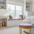 サンフランシスコのトラディショナルスタイルのおしゃれな子供の寝室 (ピンクの壁、濃色無垢フローリング、茶色い床) の写真 — Houzz
