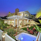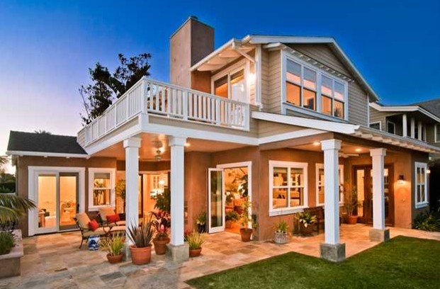 サンディエゴのビーチスタイルのおしゃれな家の外観 (漆喰サイディング、ベージュの外壁) の写真 — Houzz
