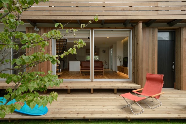 他の地域のアジアンスタイルのおしゃれなデッキ (張り出し屋根) の写真 — Houzz