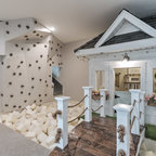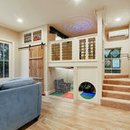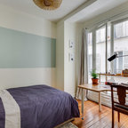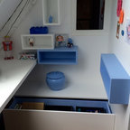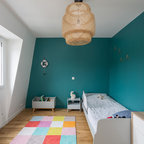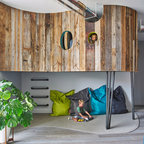 他の地域の中サイズのコンテンポラリースタイルのおしゃれな子供部屋 (グレーの壁、白い床、塗装フローリング、児童向け) の写真 — Houzz