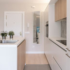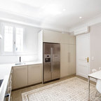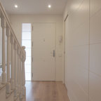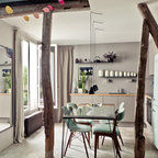 バルセロナの中サイズのミッドセンチュリースタイルのおしゃれなダイニングキッチン (ベージュの壁、淡色無垢フローリング、茶色い床) の写真 —  Houzz