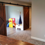 バーリントンのラスティックスタイルのおしゃれな子供部屋 (白い壁、淡色無垢フローリング、ベージュの床) の写真 — Houzz