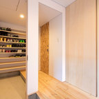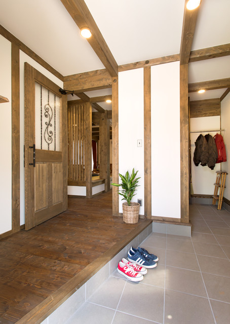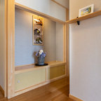 名古屋のアジアンスタイルのおしゃれな玄関 (白い壁) の写真 — Houzz