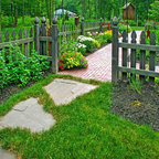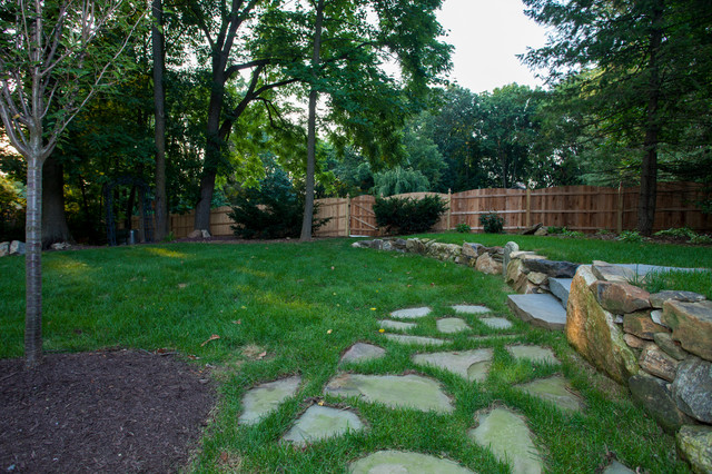 フィラデルフィアの中サイズのカントリー風おしゃれな裏庭 (半日向、コンクリート敷き ) の写真 — Houzz