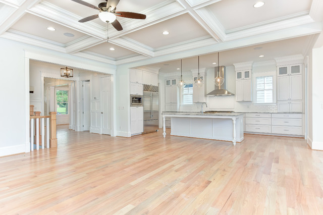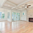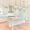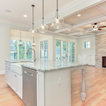 An expansive, contemporary new home construction featuring an open concept great room with a modern kitchen and spacious main living area. High end finishes and modern design elements give this 5,000 square foot custom build a luxurious atmosphere.