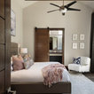 Half floating shelves leaves room for crawl space door. Great surround wall!!!